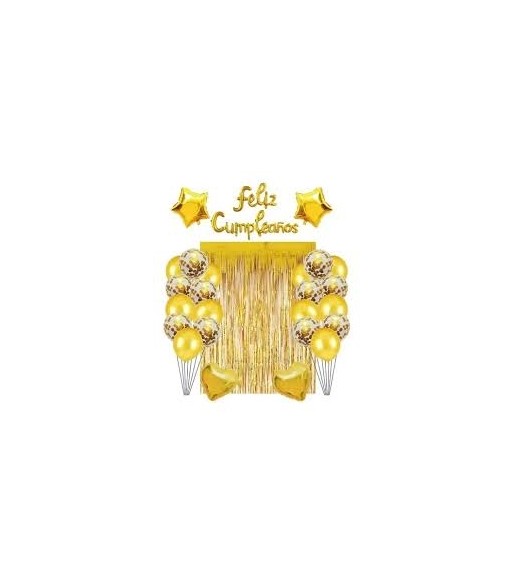 CORTINA + GLOBOS FELIZ CUMPLEAÑOS DORADO