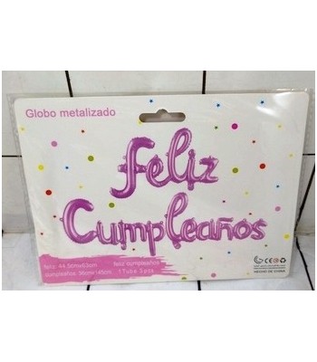 SET GLOBOS METALIZADOS FELIZ CUMPLE ROSA