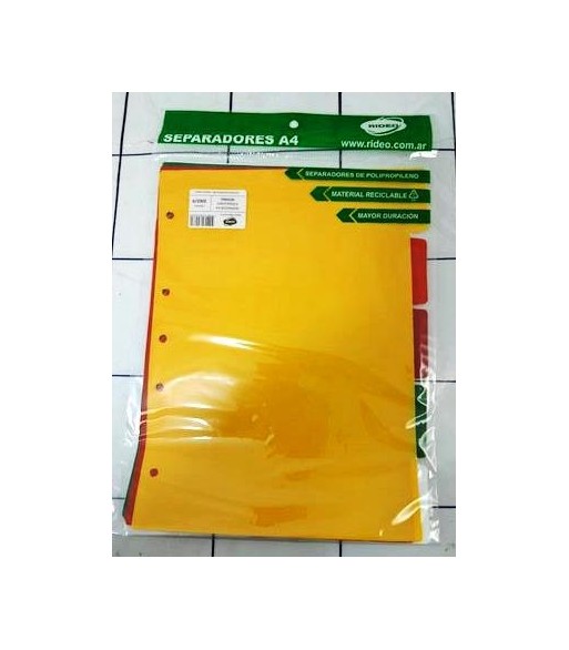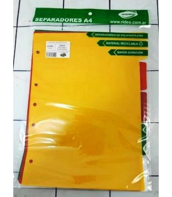 SEPARADOR A4 5 POS. PLASTICO RIDEO COL INTENSOS