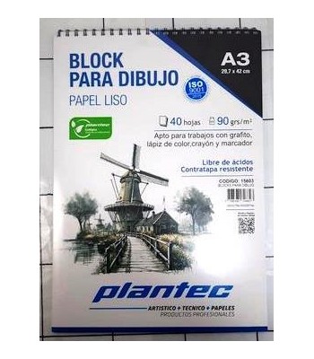 BLOCK ESP DIBUJO LISO A3 PLANTEC (29.7x42) 90G X40H